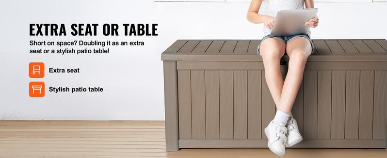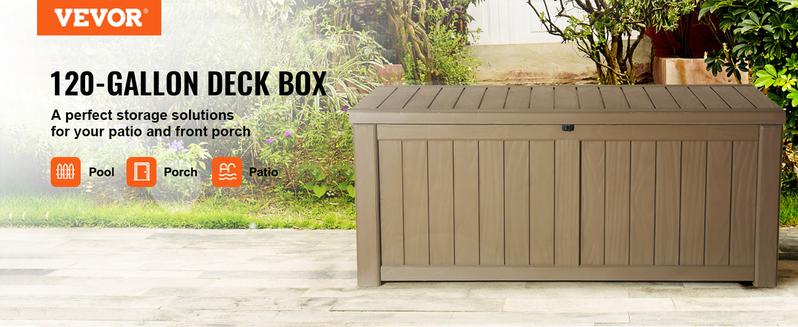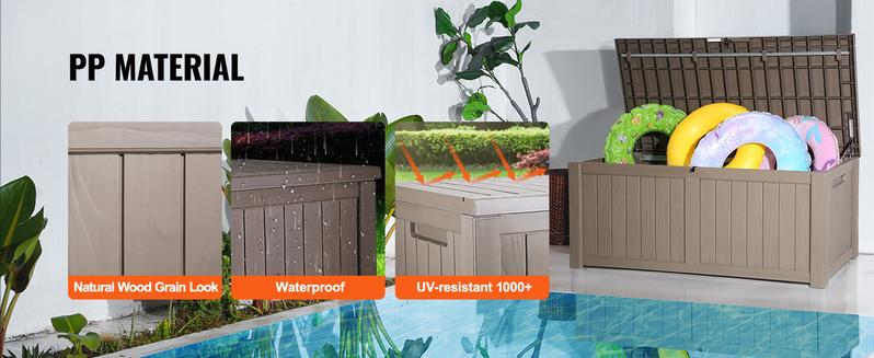 VEVOR Deck Box, Outdoor Storage Box, Waterproof PP Deckbox with Aluminum Alloy Padlock, for Patio Furniture, Garden Tools, Pool Toys, Outdoor Cushions, Gray Organiser