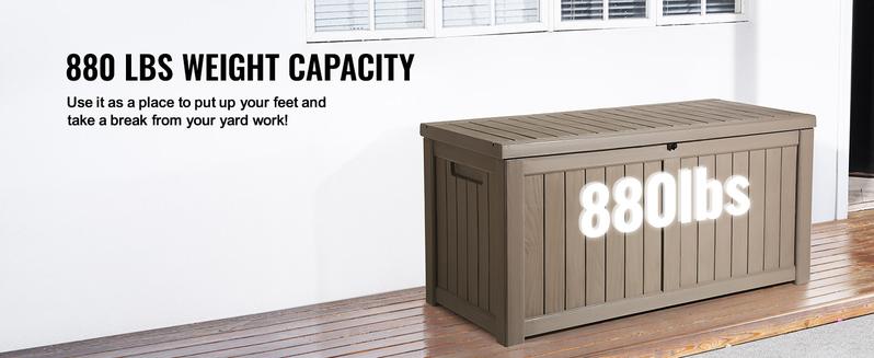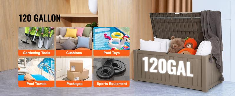 If you have a lot of stuff that you need to stash away, then take a look at our 120-Gallon deck box! It is a safe space to keep all your outdoor gear. You can store everything from gardening tools, pool toys, patio cushions, or even delivery boxes.