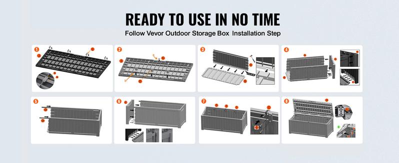 VEVOR Deck Box, Outdoor Storage Box, Waterproof PP Deckbox with Aluminum Alloy Padlock, for Patio Furniture, Garden Tools, Pool Toys, Outdoor Cushions, Gray Organiser